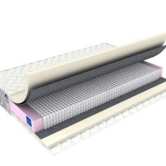 В состав этого матраса входят высококачественные материалы, которые гарантируют Вам комфорт и блаженство. В качестве наполнителя используется ортопедическая с эффектом памяти формы (мемориформ). Она точно повторяет форму тела, обеспечивая максимальный анатомический эффект. Способствует расслаблению мышц и хорошему кровообращению. Геовойлок защитит мягкий наполнитель от истирания о пружинный блок и не позволит ему разорваться.